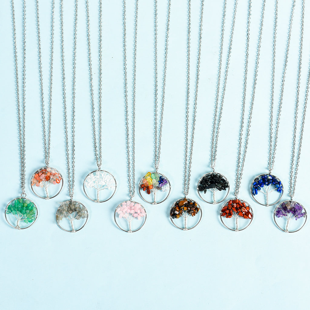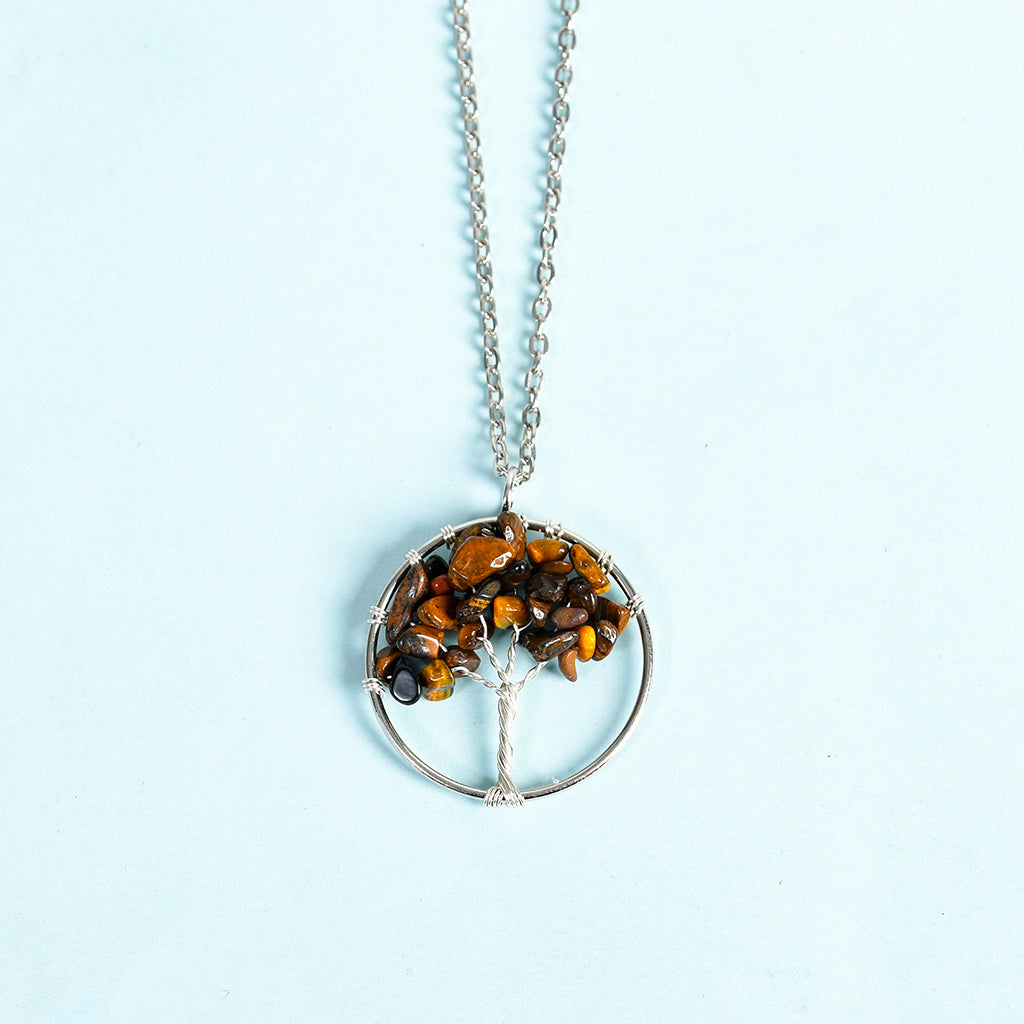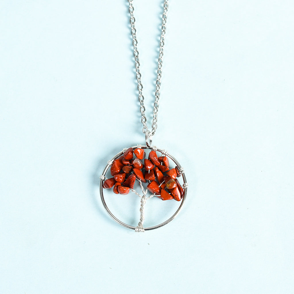 Pendant Shape: Circular Tree of Life symbol, wire-wrapped with natural stones