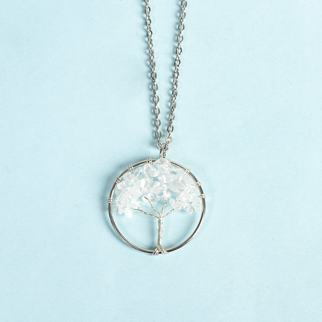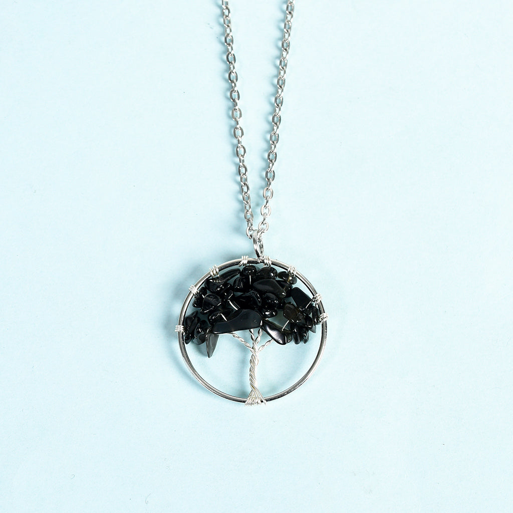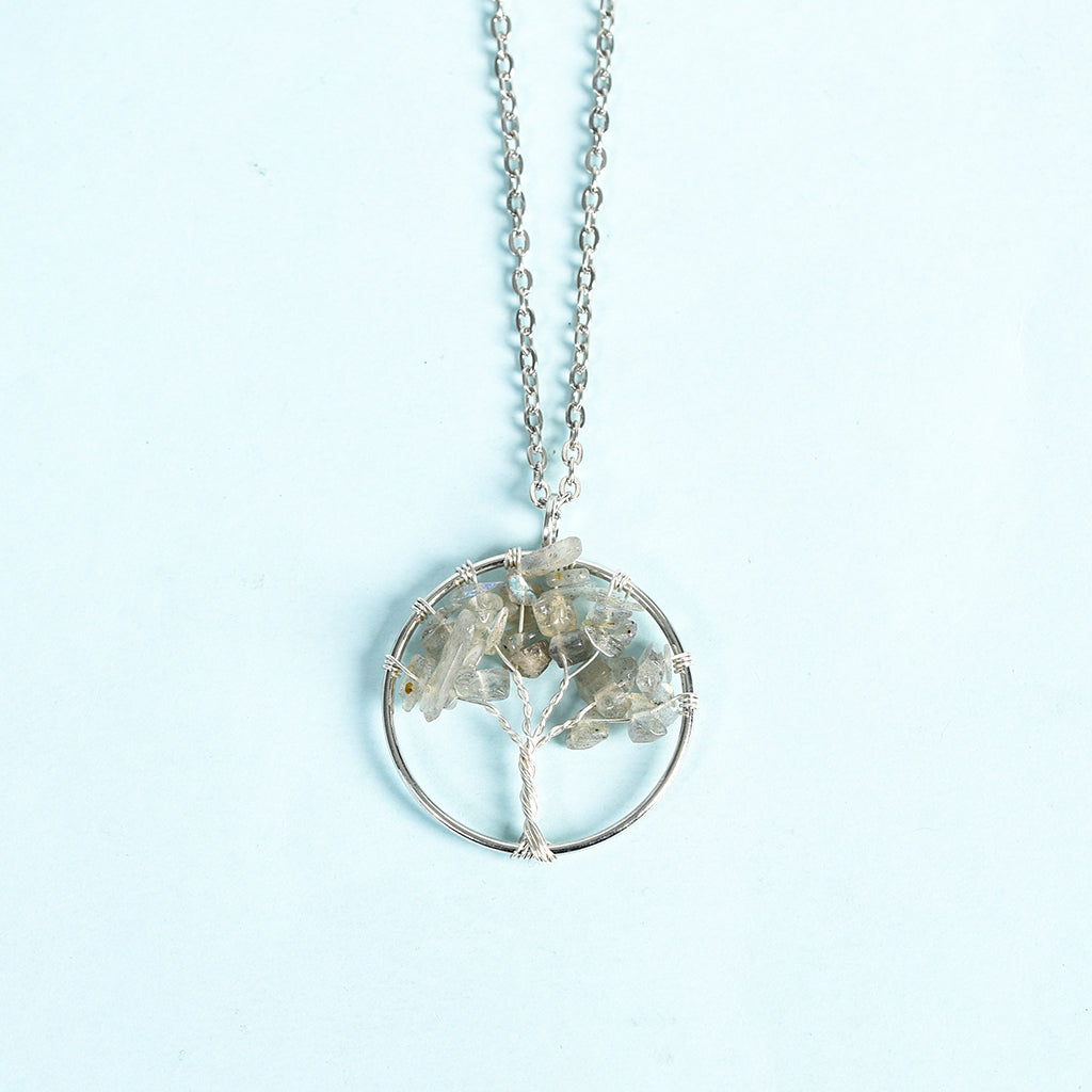 Pendant Shape: Circular Tree of Life symbol, wire-wrapped with natural stones