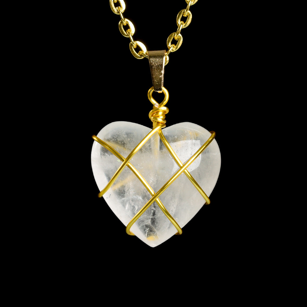 This heart-shaped crystal pendant, beautifully wire-wrapped and polished to perfection, embodies the essence of love and emotional balance. The wire wrapping forms a grid-like pattern, symbolizing protection and energy flow. This pendant is a lovely reminder of the Taoist belief in interconnectedness, balance, and the power of love as a transformative force.